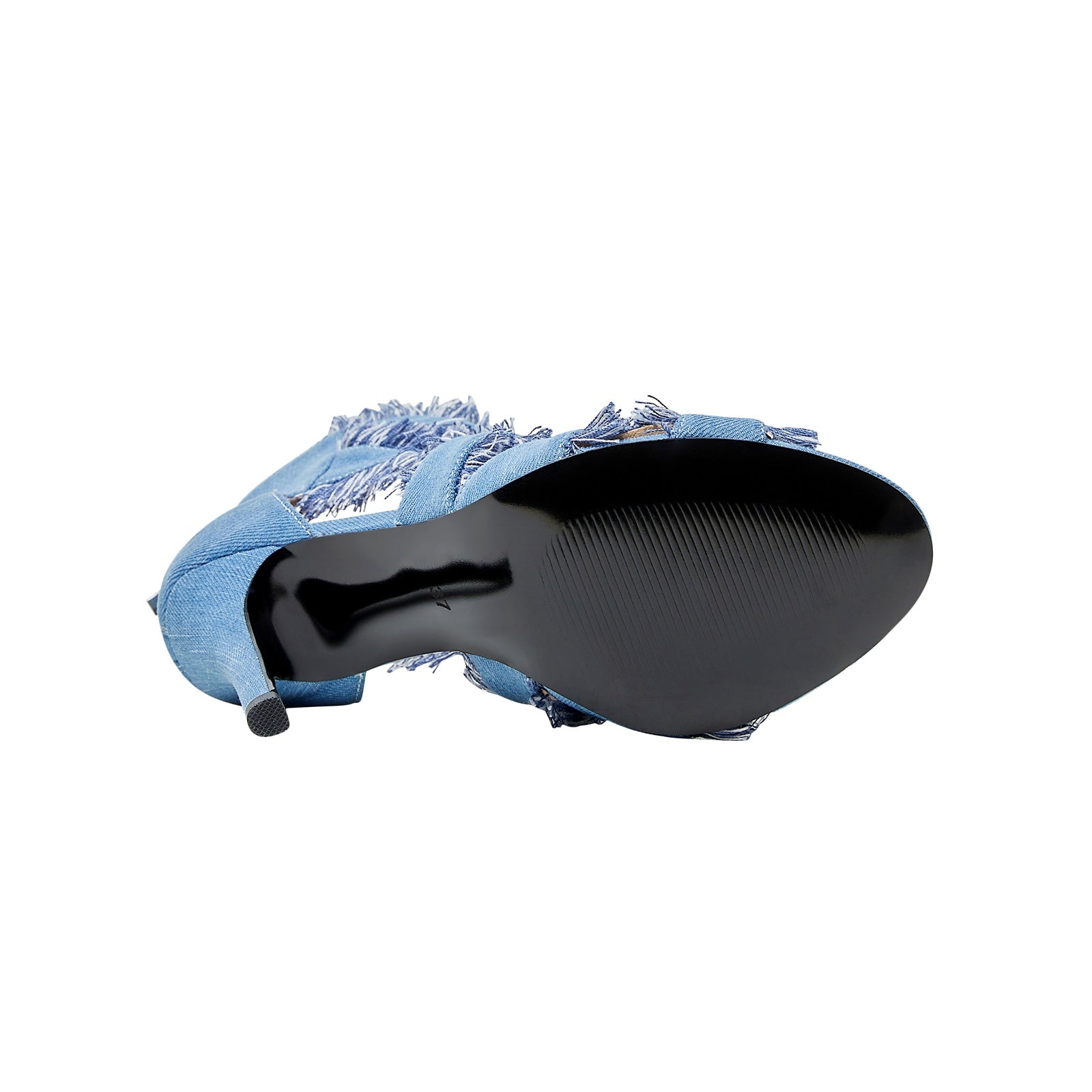 Style denim stiletto heels for women with a white oversized shirt dress, a double-denim set, or leather shorts and a crop top for a look that balances grit and glam. It's a fearless reinvention of a classic fabric, perfect for turning everyday cool into unforgettable style. Get the Cutout Distressed Denim Stiletto Heel Ankle Boots from Jady Rose by 0cm.